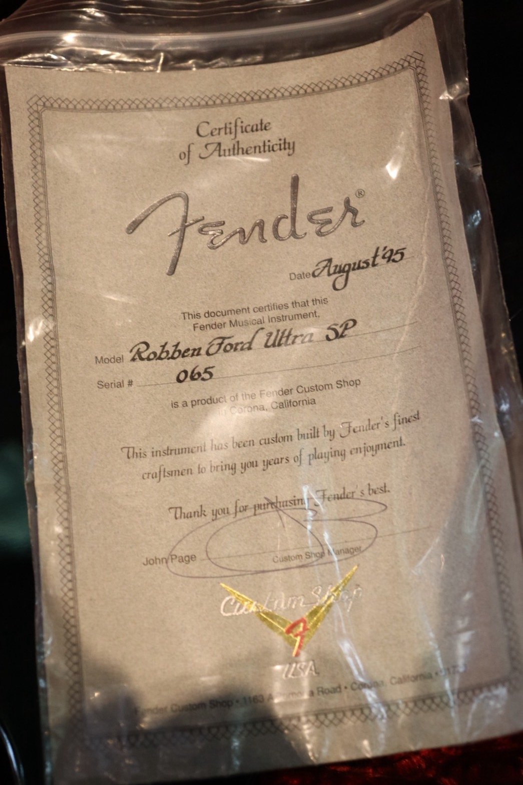 Fender Custom shop Robben Ford Ultra SP 1995 Sunburst (3.5kg)