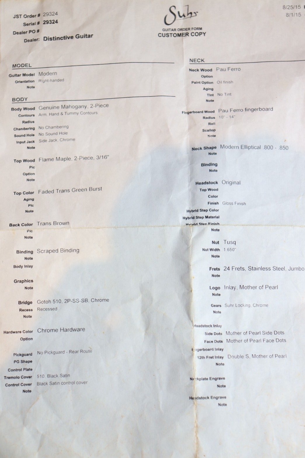 หมวดหมู่ : ELECTRIC GUITAR ,  Suhr ,